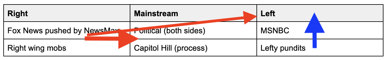 Marcy notes they also have a mob that hounds the mainstream media to yank the narrative in their direction. That mob is especially effective in shaping process stories, like a government funding fight.