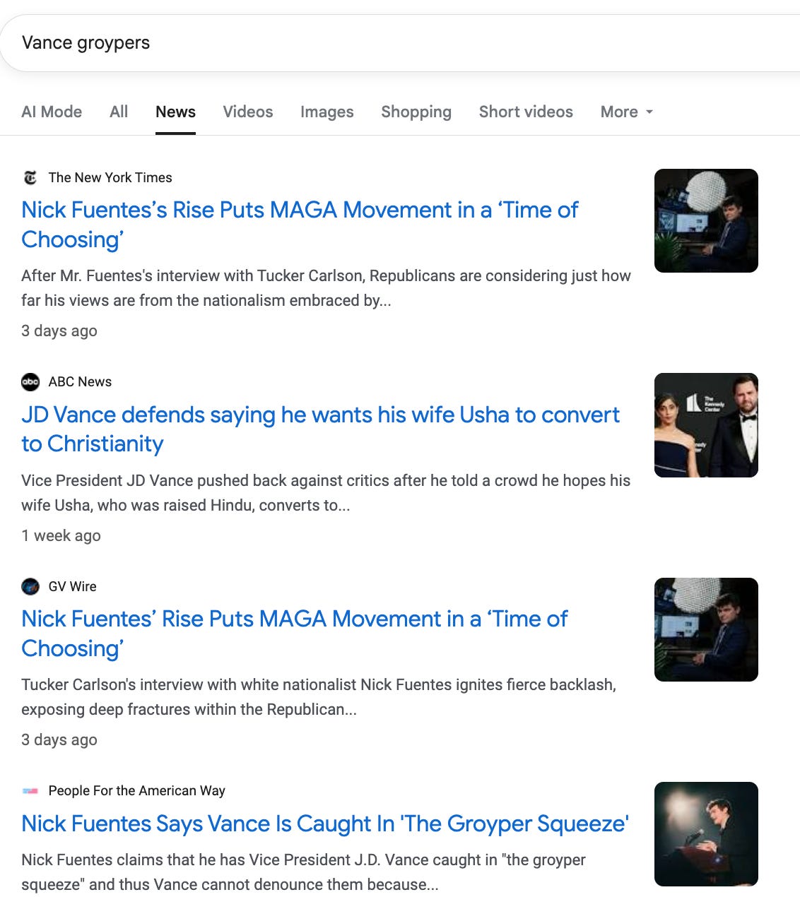 Fuentes called this “The Gropyer Squeeze,” and the intent is to force Vance to—at the very least—not do what Ted Cruz has done and call out the Groypers: